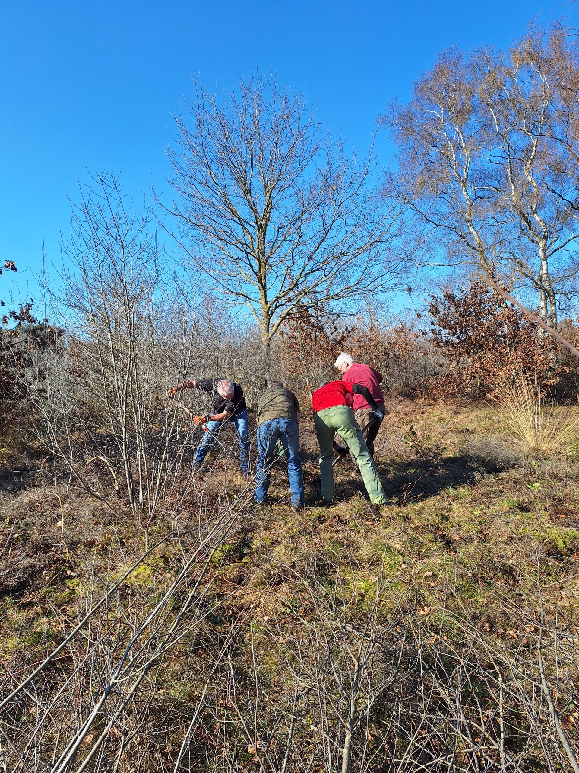Als liefhebbers van de oriëntatiesport hopen we natuurlijk nog lang gebruik te kunnen maken van de natuurgebieden in Nederland. De natuur gaat zijn gang en ook het bos groeit waar het wil groeien. Om het heidegebied hier zorgvuldig voor te beschermen, heeft Henk Jan ons dit jaar gevraagd om de (kleine) bomen uit te steken. Zo blijft er ruimte voor heidegroei. Dankzij de deskundige uitleg van Henk Jan, de stralende zon en de fantastische zelfgemaakte snacks van Hanneke en Dorine was het een groot succes.